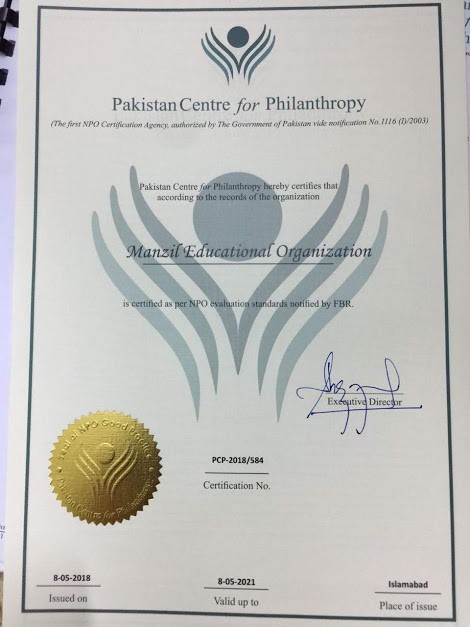 MEO received the Pakistan Centre for Philanthrophy (PCP) certification which allows the community based organization to be exempted from taxes.